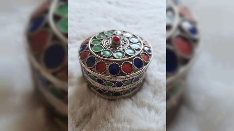 Und sie hat gesagt: „Sie wird nur denjenigen heiraten, der ihr einen silbernen Armreif mit bunt glitzernden Steinen schenkt.“